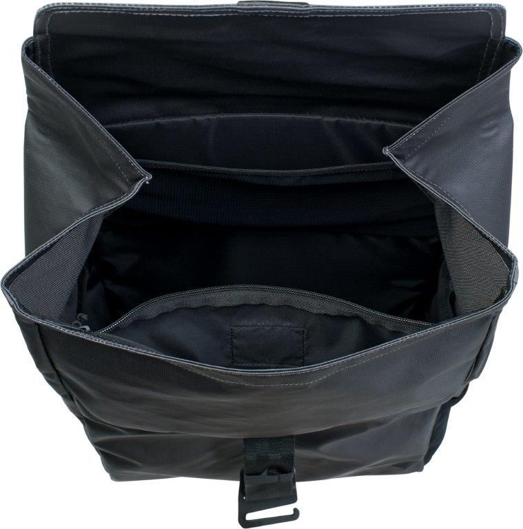 - Deckel mit Aluminium-Hakenverschluss, durch den das Volumen des Hauptfachs angepasst werden kann