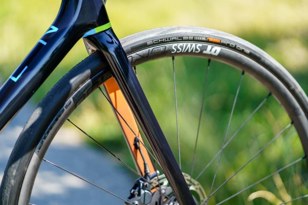 Die große Reifenfreiheit für moderne Straßenreifen bis 32mm ist neben dem Rahmen und der innovativen Sattelstütze ein weiterer Punkt für mehr Ermüdungsfreiheit auf langen Strecken. So verzeiht das Rad auch mal kurze Ausflüge auf unbefestigte Straßen.