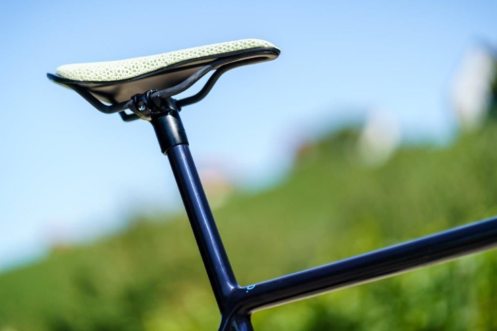 Vertikal dünn geformte Ketten- und Sitzstreben sorgen für Nachgiebigkeit, während ihre horizontale Ausformung und Anbindung an den Hauptrahmen für einen steifen Antrieb sorgen.